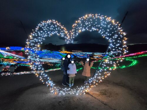 「国営讃岐まんのう公園」を楽しんだ一日。午後はキャンプ場で休憩し、そして夜の部へと突入しました。お楽しみはイルミネーションです。 イルミネーションって、ホント寒いんですけどねぇ…けれど、やっぱり見に行きたくなってしまいます。ここの嬉しいとこ…